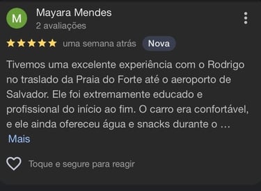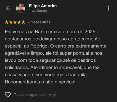 Transporte confortável com vistas incríveis do litoral norte da Bahia.