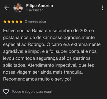 Viagem tranquila e segura, o Rodrigo foi super pontual e atencioso.